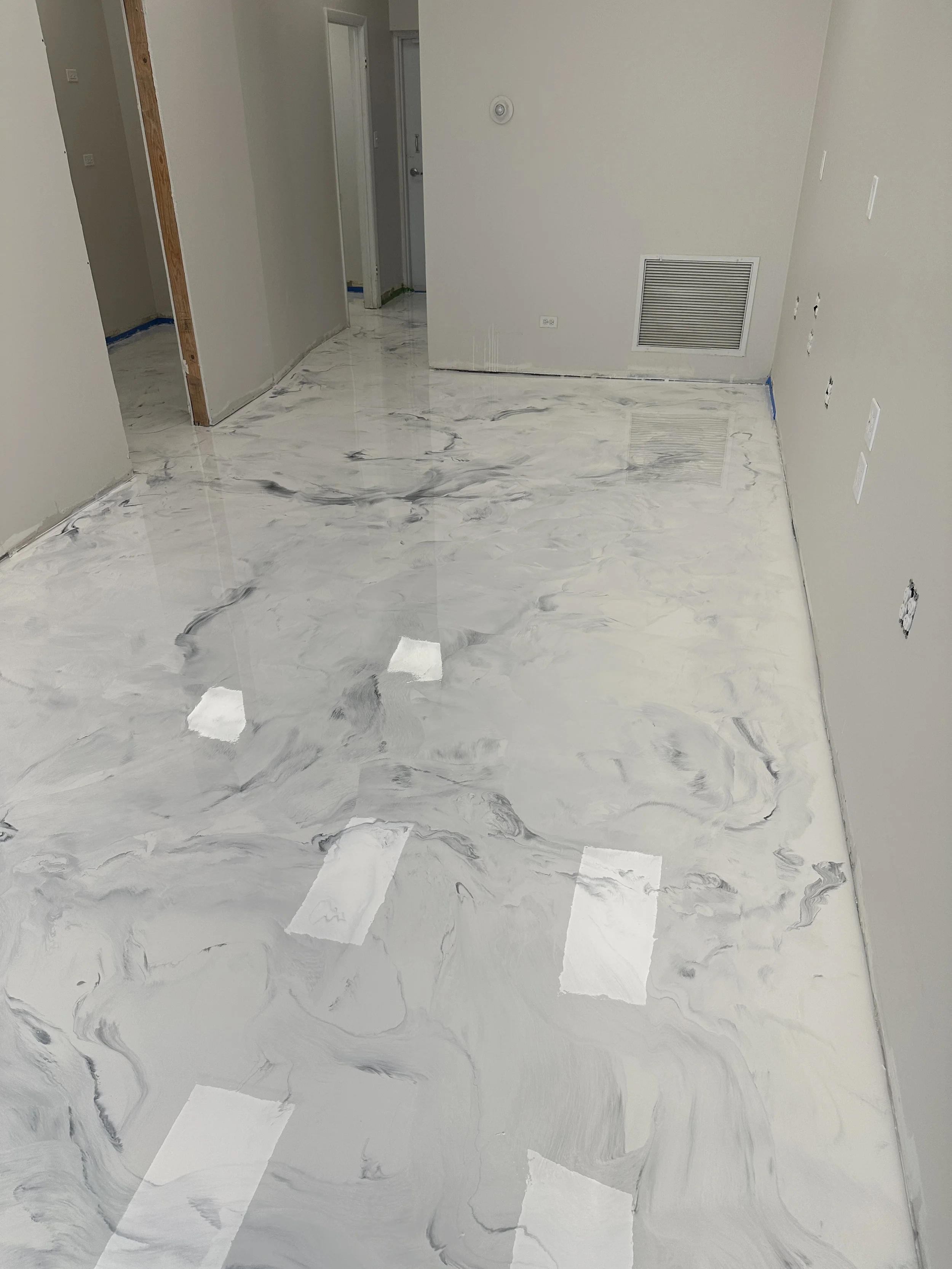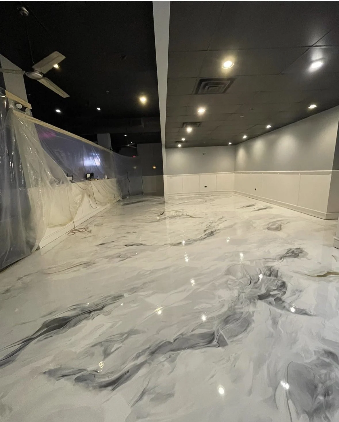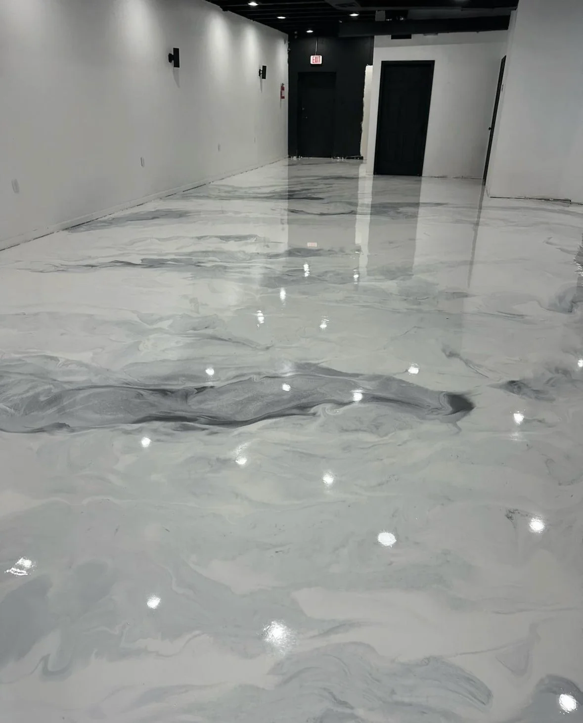 Metallic epoxy floors have a stunning, unique look. The shimmering metallic finish creates a high-end, visually striking surface that can mimic the appearance of marble, granite, or even abstract art. The variety of colors and designs available allows for customization, ensuring that the floor matches your desired style and ambiance.